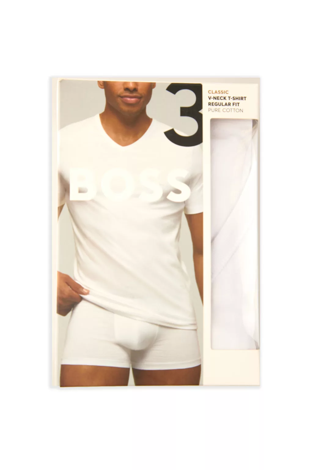 V-nyakú póló, 3 db-os pack-ban, BOSS márkajelzéssel.