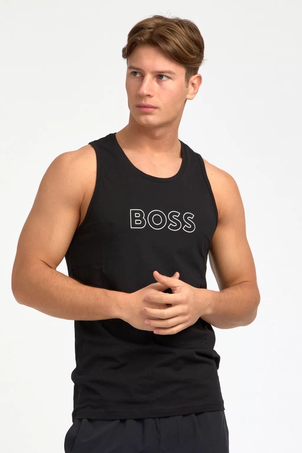 Környakú trikó, BOSS márkajelzéssel a mellkason.